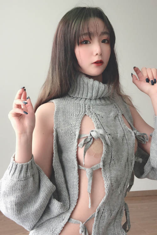 萌妹是青水 露背毛衣